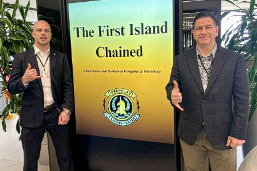 Doctors Lumpy Lumbaca and Sam Mullins from the Daniel K. Inouye Asia-Pacific Center for Security Studies (DKI APCSS) recently participated in “The First Island Chained: Taiwan Resistance and Resilience” wargame and workshop. Held at Northeastern University in Arlington from March 31 to April 2, 2026, the event represented a significant departure from traditional military simulations. Orchestrated by the Irregular Warfare Center (IWC) and Arizona State University (ASU), with technical execution from Expert Theory and supporting platforms like Providence, the exercise challenged participants to look beyond the kinetic “climax” of an invasion and instead grapple with the reality of a Taiwan occupation. Participants included a mix of seasoned irregular warfare practitioners, leading defense education institutions, and up-and-coming graduate students focused on national security. By shifting the focus toward resistance and subversion, the organizers created a space where legitimacy was as much a weapon as any missile system.